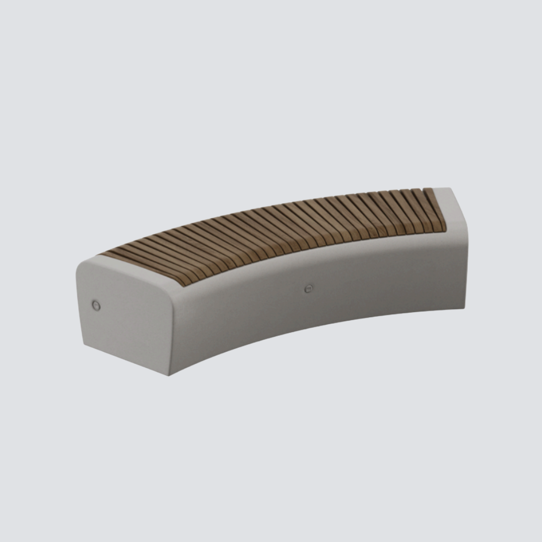 Banco Curvo em Concreto com Assento Angular em Madeira
