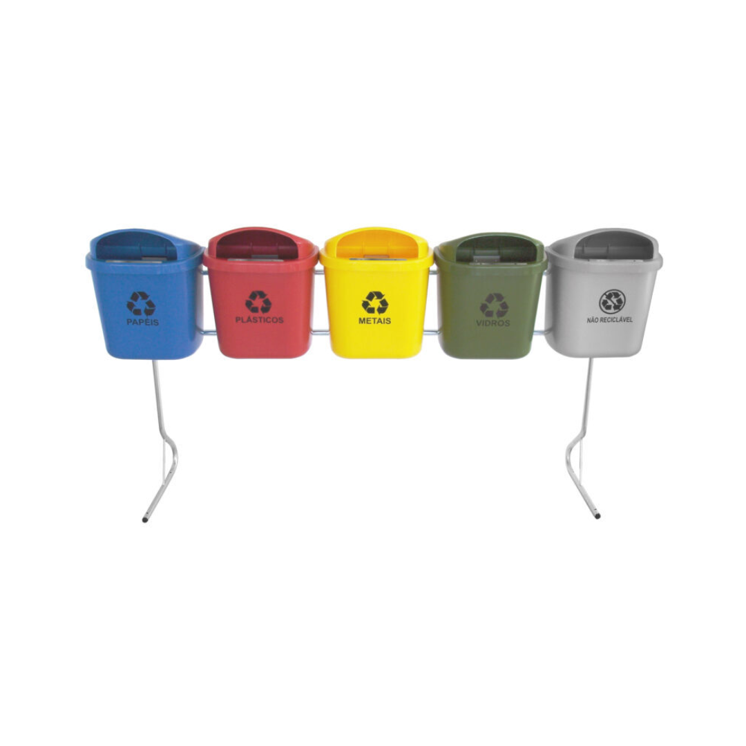 Aplicação: Ideais para pontos de coleta seletiva em instituições, empresas, escolas, etc., com cores e identificação para separação de resíduos.