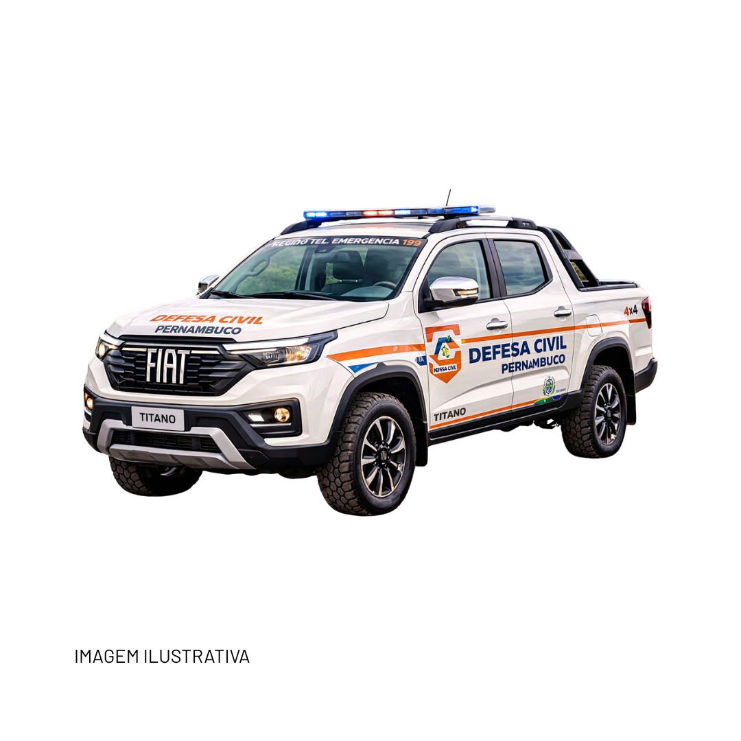 Fiat Titano Volcano 2.2 Turbodiesel 4x4 AT caminhonete cabine dupla para transporte administrativo de pessoas, com tração 4x4, motorização diesel, capacidade para 5 ocupantes, caçamba com capacidade mínima de 1.000 kg e engate para reboque. A linha Titano é apresentada pela Fiat com motor 2.2 turbodiesel, tração 4x4, tanque de 80 litros e capacidade de carga acima de 1.000 kg, alinhada ao perfil operacional descrito no item.