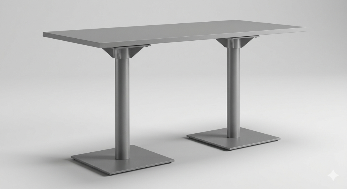Mesa retangular para escritório ou reuniões, com tampo em MDF revestido e estrutura metálica com dois pés, garantindo alta resistência e estabilidade. Ideal para até 4 pessoas, com design moderno e acabamento anticorrosivo para uso corporativo.