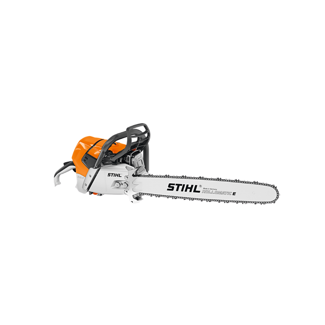 Motosserra profissional a combustão, indicada para cortes pesados e uso florestal, atendendo às exigências mínimas de potência, rotação, capacidade de tanques e faixa de sabre (16” a 28”) conforme especificação do item.