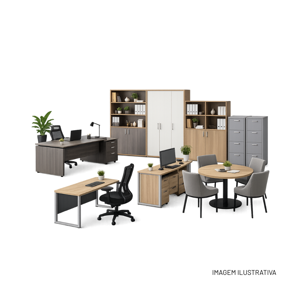 Possibilidade de composição com portas, prateleiras, módulos superiores, divisórias e demais acessórios no mesmo padrão construtivo.