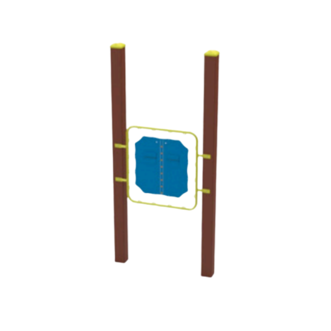 Painel camisa sensorial interativo, desenvolvido para estimular habilidades motoras, cognitivas e sensoriais por meio de elementos funcionais como botões, zíper e velcro. Estrutura resistente em Madeira Ecológica WPC com painel em tubo de aço carbono. Modelo frente e verso, permitindo a utilização simultânea por duas crianças. Ideal para playgrounds, espaços inclusivos e ambientes educacionais.
