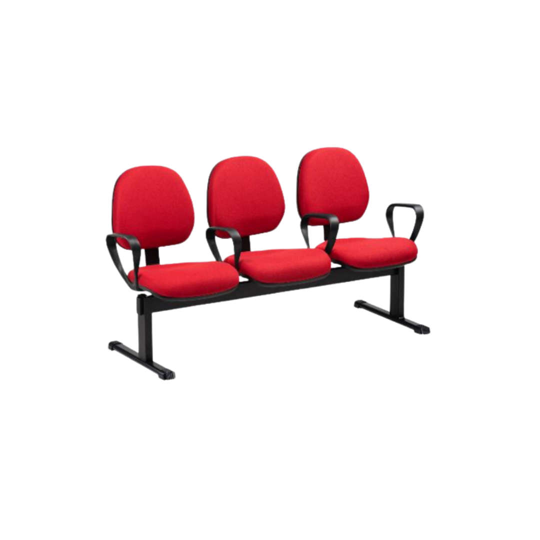 . Suporte do encosto: chapa de aço estampada 6,35 mm, alta resistência mecânica, fixada ao assento de compensado