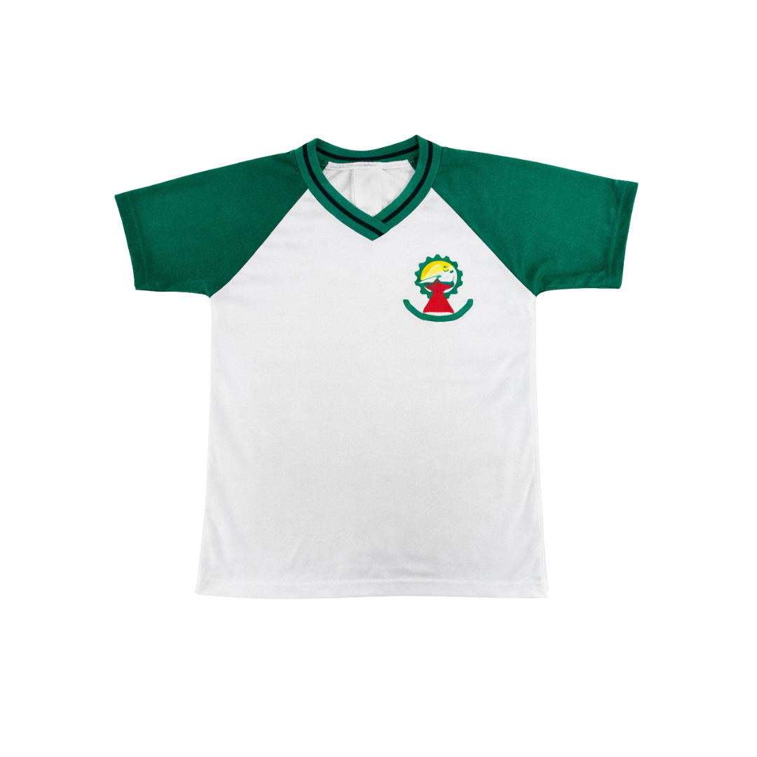 Camiseta manga curta destinada exclusivamente ao uso como uniforme escolar, confeccionada em malha de alta qualidade, com composição 70% Poliéster e 30% Modal, proporcionando conforto, durabilidade e resistência ao uso diário por estudantes. Possui mangas raglan, gola V retilínea listrada, acabamentos reforçados, estampa frontal institucional em silkscreen e etiquetagem completa, atendendo às normas técnicas nacionais e internacionais.