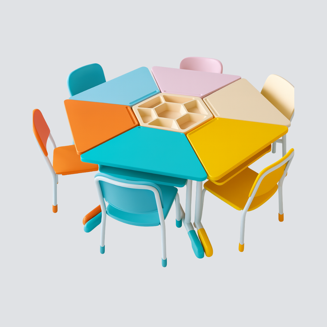 Conjunto Sextavado – Mobiliário Escolar Modular